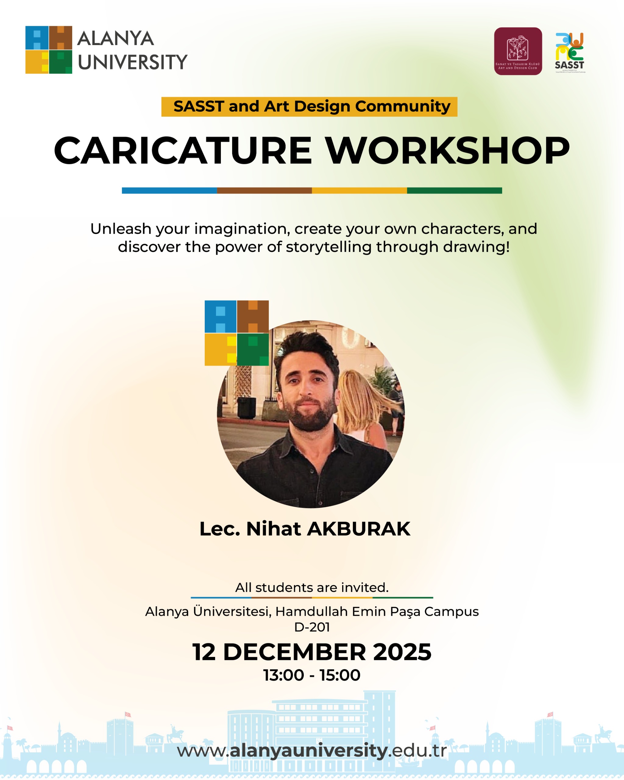 Dear students, Students who wish to assist at our university's promotional stand at the Alanya Christmas Market on December 13-14 can contact the Health, Culture and Sports Directorate. İhsan ERD...